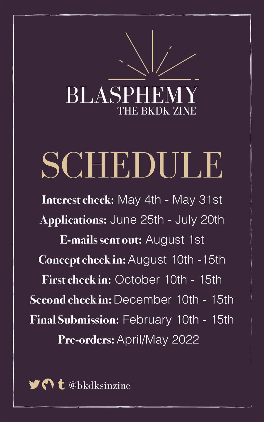 Blasphemy is a NSFW for profit BKDK/DKBK zine centred around sin! This can be any religion that tickles your fancy. Fallen angels, lustful demons, blushing nuns - anything taboo or blasphemous surrounding religion is fair game.